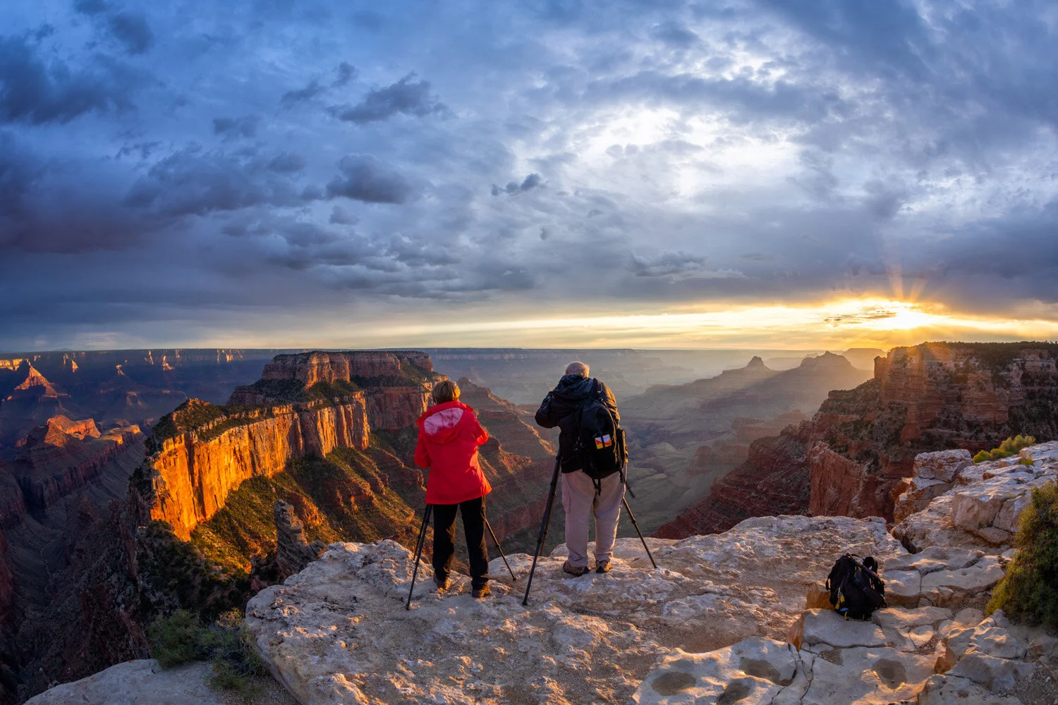 Photography couple shoot sunset at Cape Royal on North Rim of Grand Canyon.
